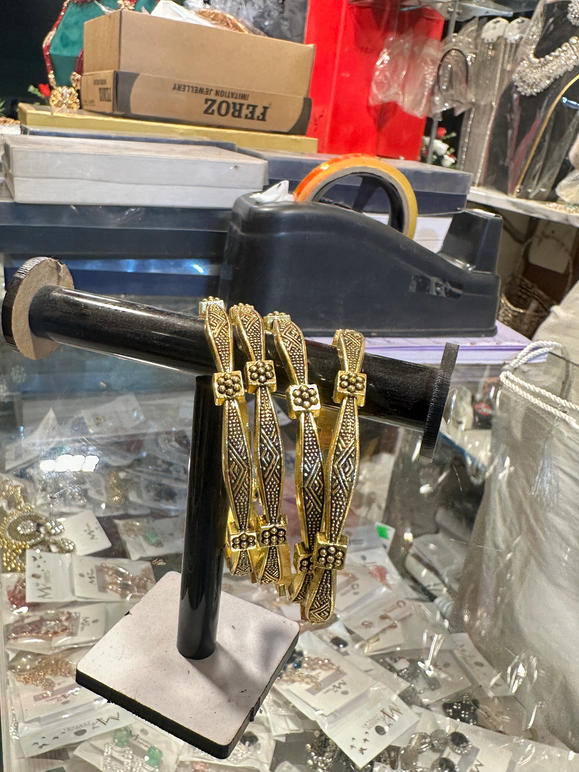 Add a touch of tradition and elegance to your style with this Antique Gold-Plated Kada Bangles Set.