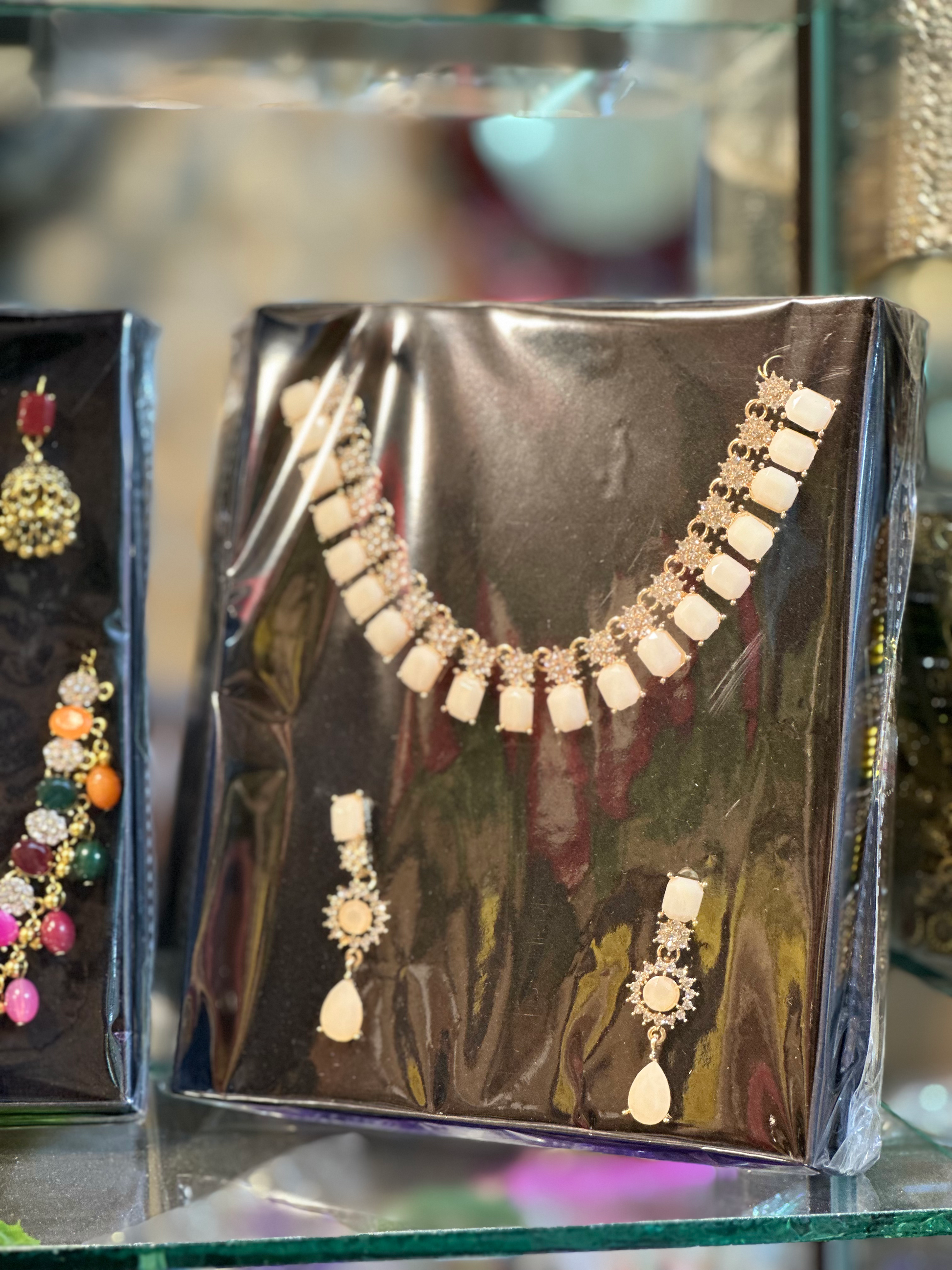 Add a touch of sophistication and charm to your look with this Elegant White Stone Necklace Set, crafted to bring timeless beauty to any outfit.